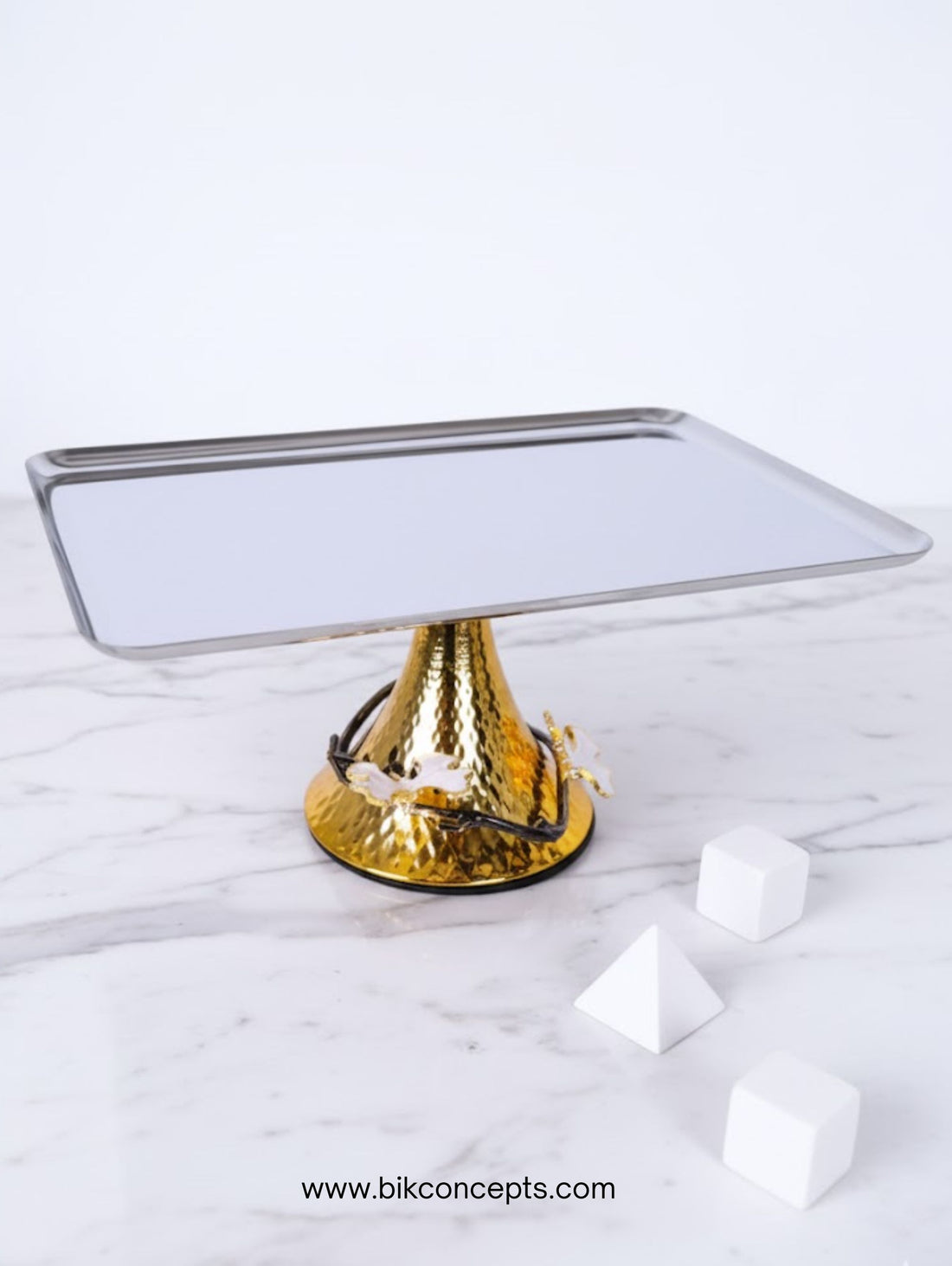Single-Tier Stainless Steel Serving Platter with Orchid Electroplated Golden Stand
