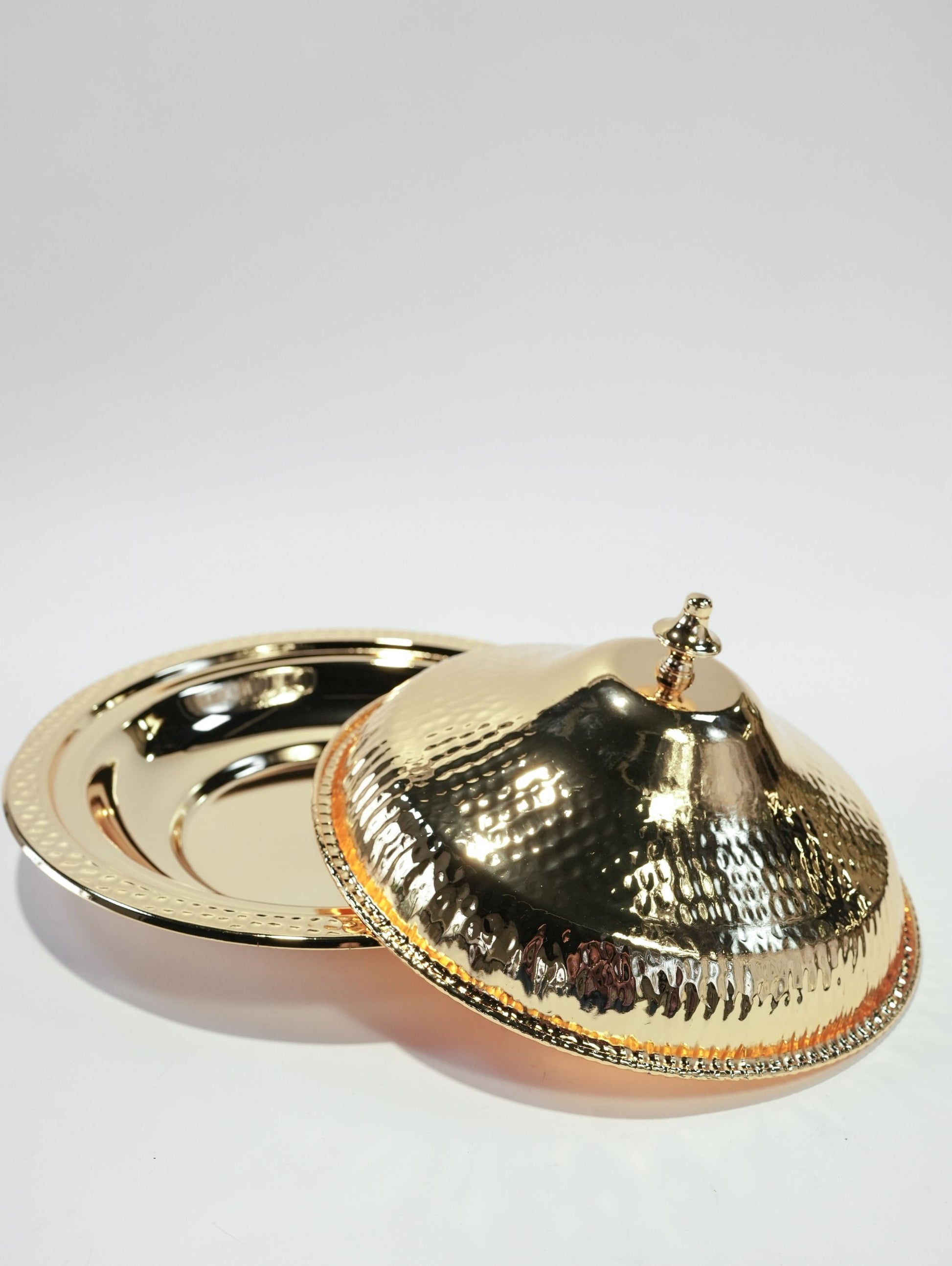 Exquisite Hammered Finish: The dome lid and tray rim feature a rich, textured hammered design that adds depth, durability, and a handcrafted artisan look.