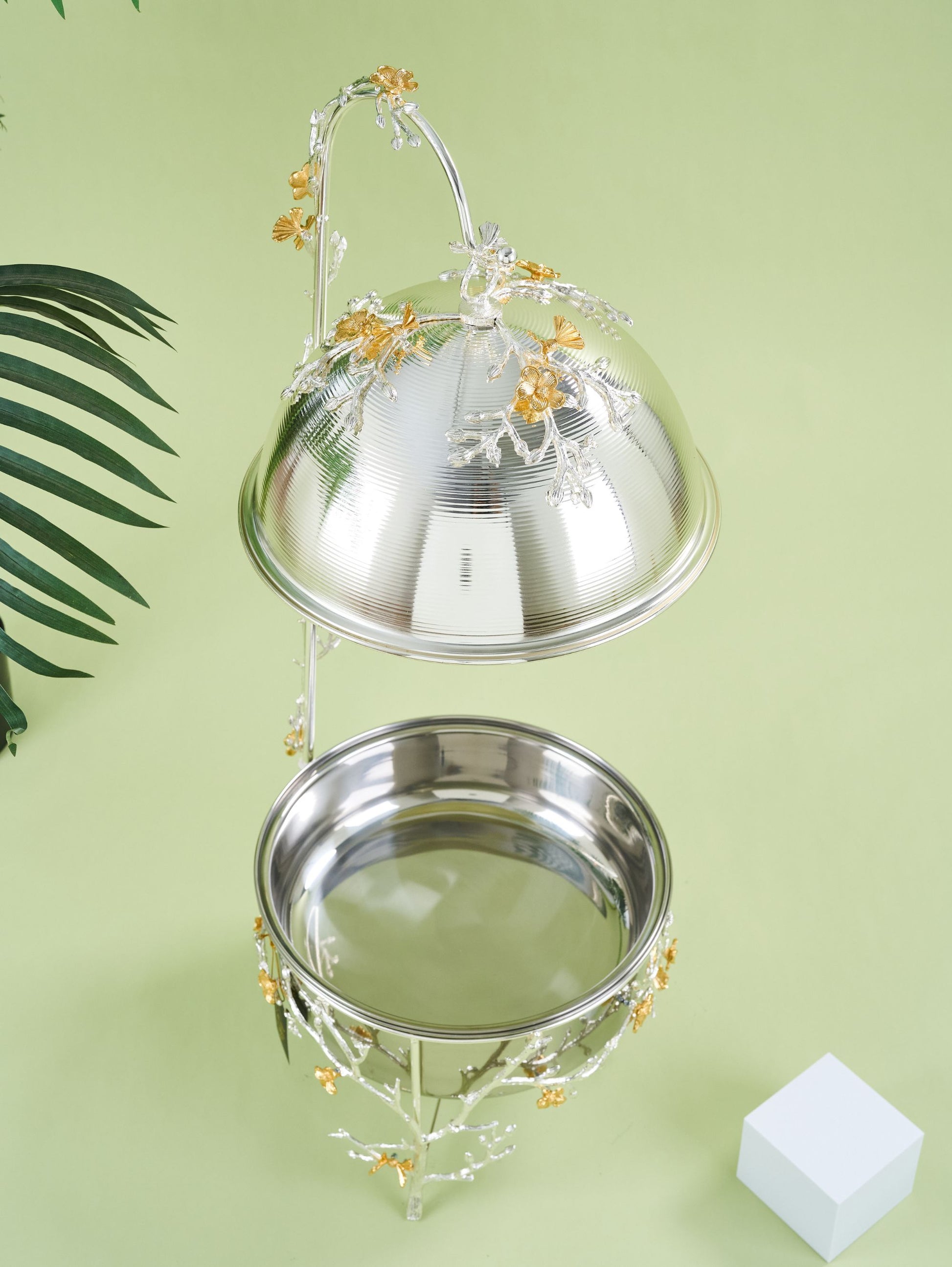 Exclusive Design: Features captivating silver-toned branching detail and shimmering golden blossom accents on the dome and base for a truly regal aesthetic.