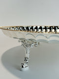 Ornate Pedestal Design: The platter is gracefully lifted by four beautifully detailed, decorative silver-toned feet, mimicking a traditional, high-end pedestal stand.