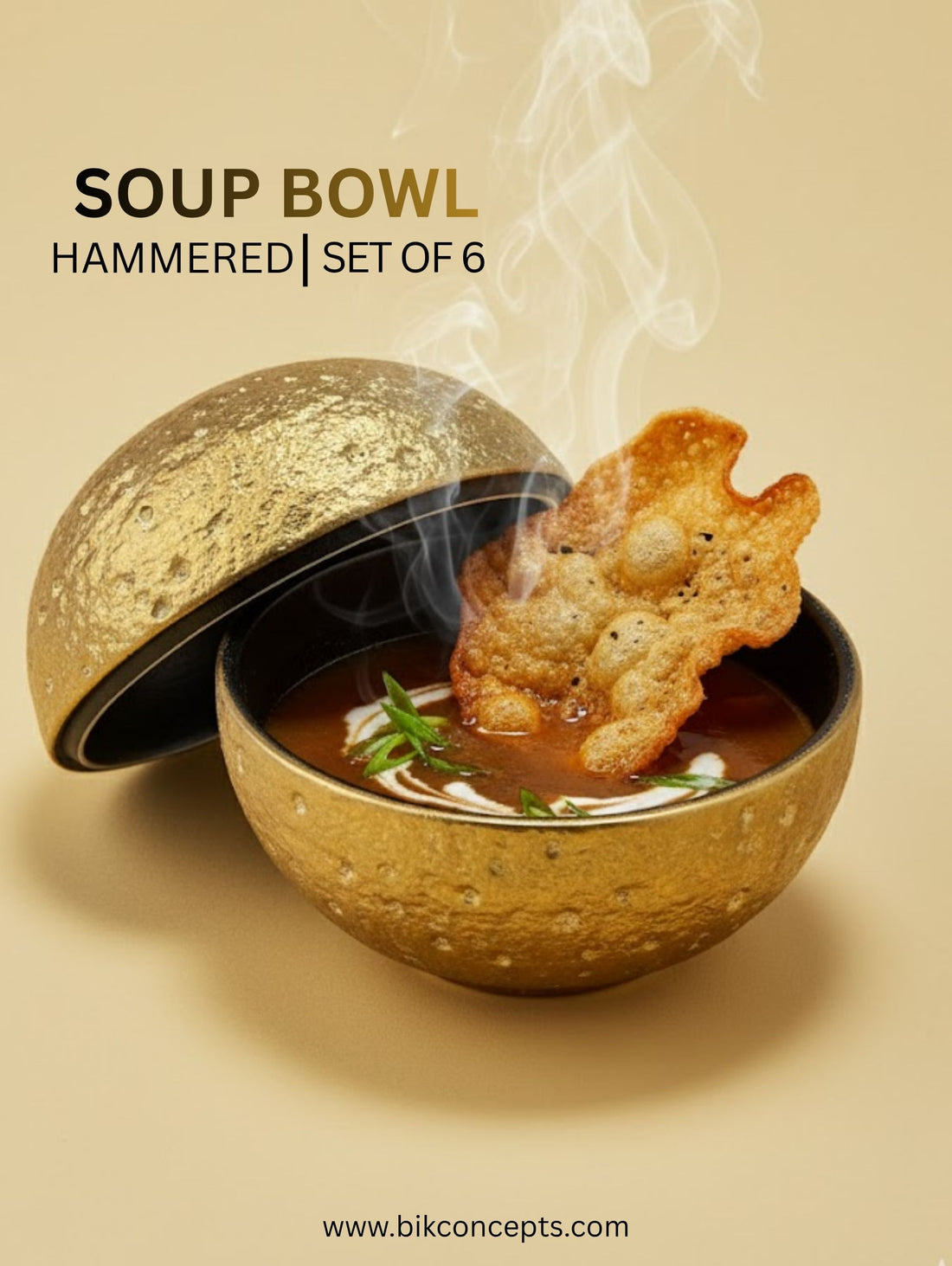 Set of 6 – Luxe Gold-Hammered Textured Bowls with Lids