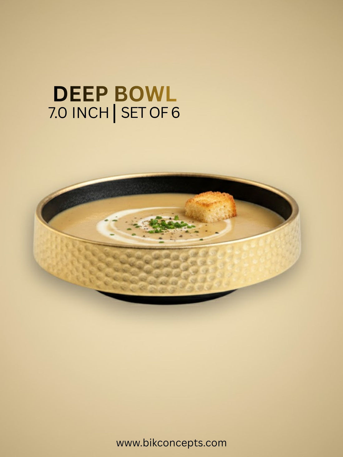 Set of 6 – 9.5inch Luxe Deep Plates with Gold Textured Rim