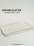 12" Rectangular Mid-Size Speckled White Serving Platter - Set of 6