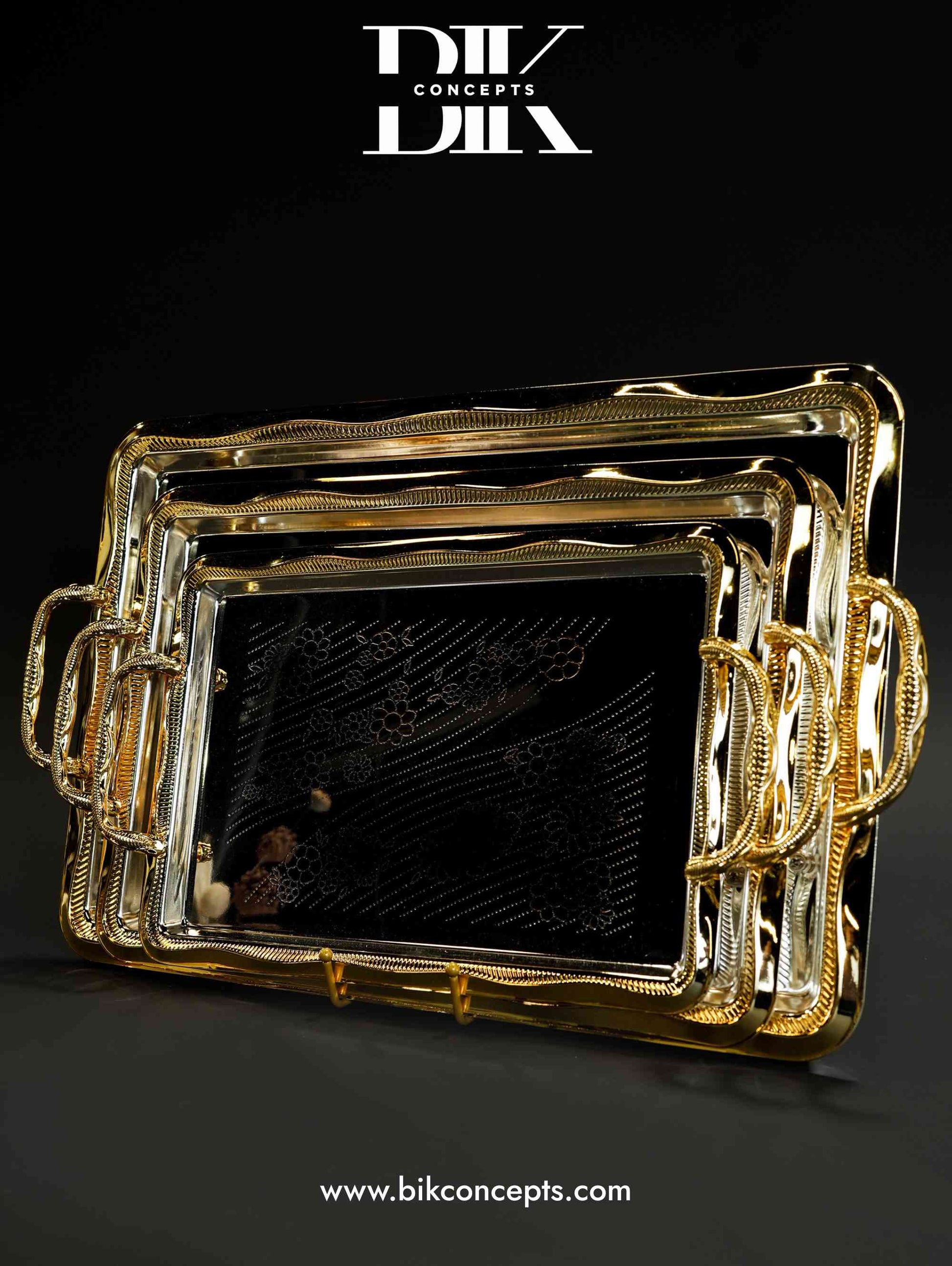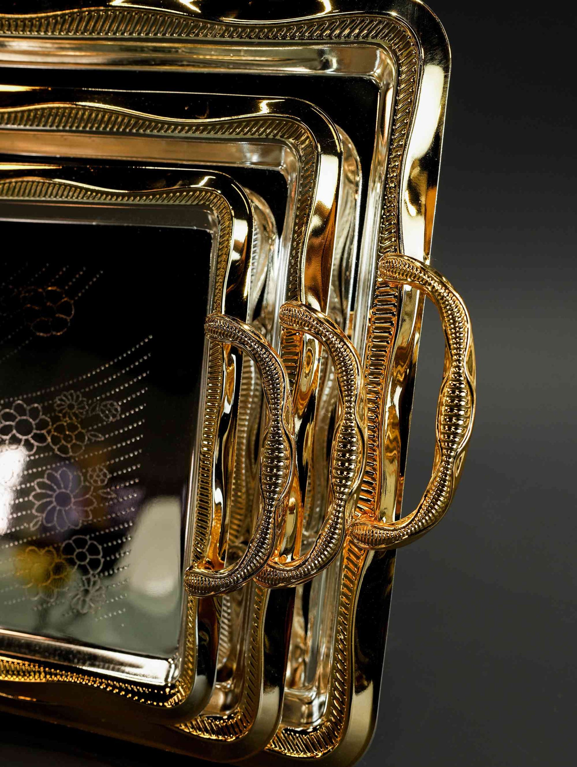 The Art of High-End Entertaining From a formal dinner party to a casual weekend gathering, this Majestic Serving Tray Set provides the perfect blend of form and function. Use them together for a grand buffet or individually to elegantly serve guests throughout your home.
