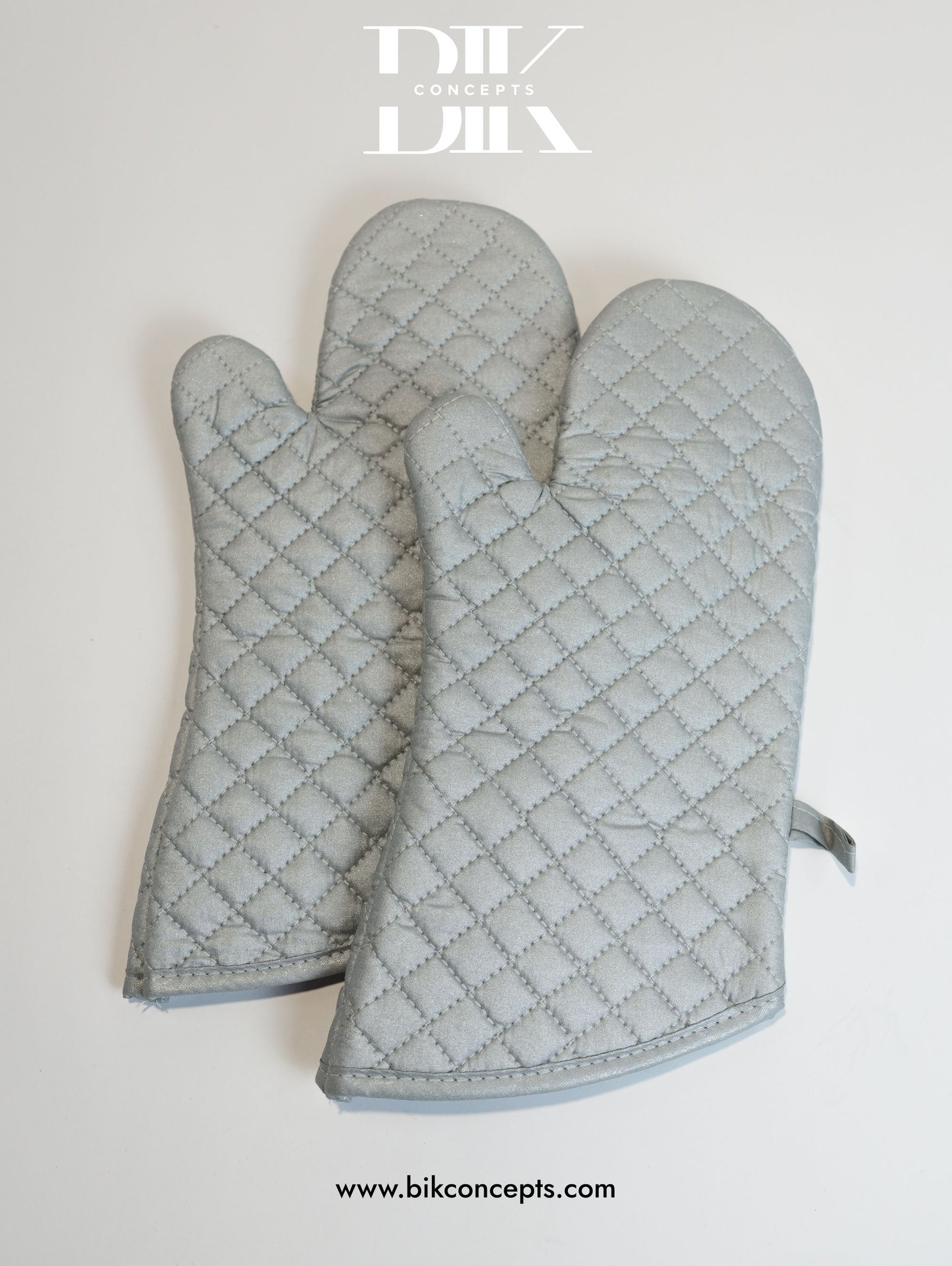 Quilted Oven Mitts - Full Forearm Protection (Silver/Grey)